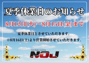 夏季休暇のお知らせです✨